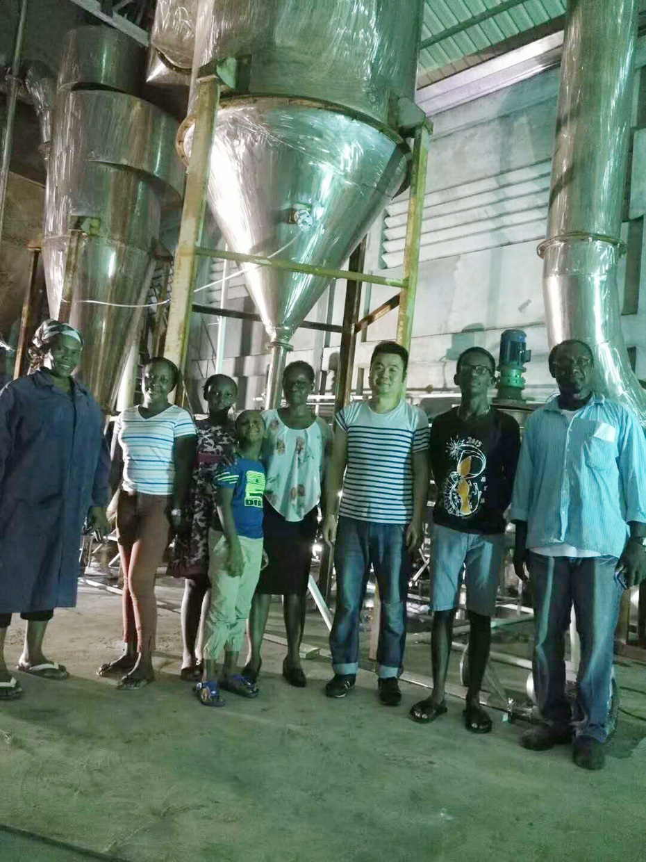 湖南富達日化高塔噴霧洗衣粉設備在南美國家成功投產,老外贊嘆不已,下午,工程師回國前和南美用戶開心留影。
