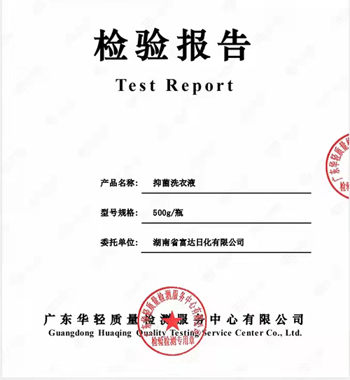 富達抑菌洗衣液檢測合格,抑菌率達到99.99%