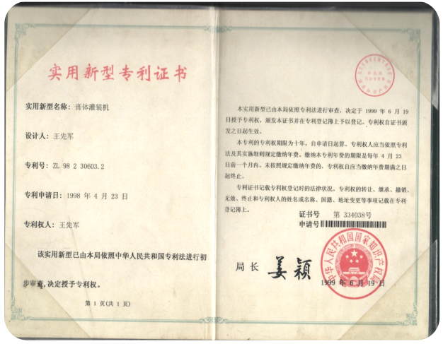 1998年4月曾獲膏體灌裝機(jī)國家專利 |