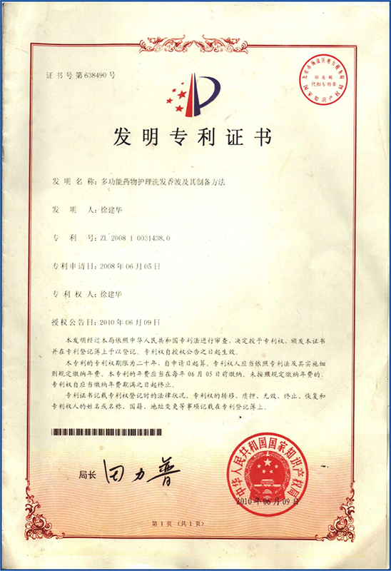 2008年06月曾獲洗發(fā)水技術(shù)發(fā)明專利 |