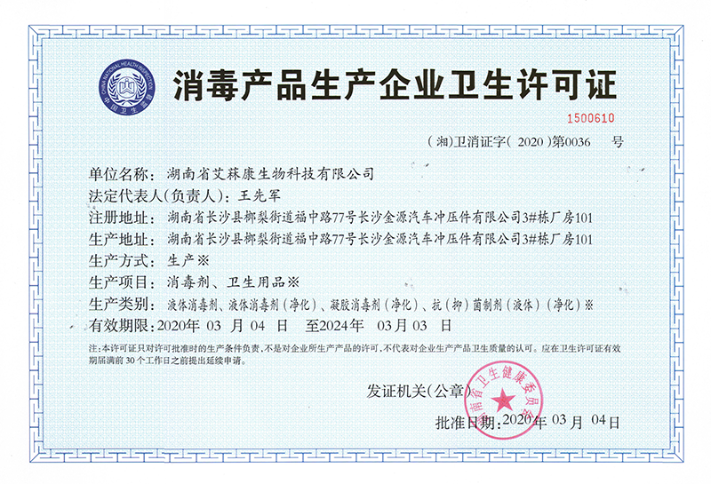 消毒劑生產(chǎn)許可證 |