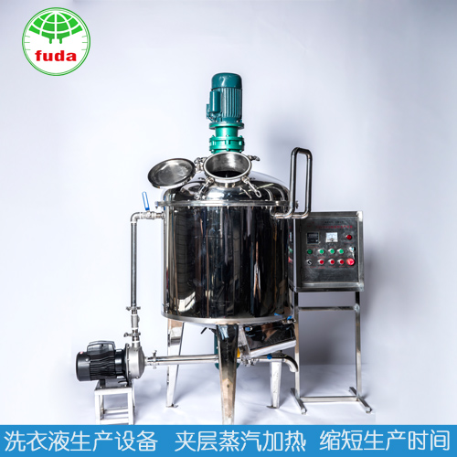 洗潔精生產設備需要實現自動化生產,操作簡單,容易上手,減少人力成本的投入,1-2人即可操作。投資者可根據自已區域市場情況及自身財力選擇不同型號。洗潔精生產設備的結構決定了洗潔精的質量。目前市面上的洗潔精設備都是靠機械外力單純攪拌成型的設備。單純攪拌成型的缺點就是產品只是暫時分散,原材料達不到充分的分散和乳化,產品很容易產生分層、沉淀,變質變臭的現象。目前正規廠家全部采用的是機械乳化工藝,電機帶動不銹鋼剪切乳化頭,可以把原料進行充分乳化和溶解,做出的產品保質期長,顏色均勻、統一,不會分層、沉淀,完全達到國家要求的保質期限。富達日化洗液洗滌劑設備與傳統攪拌設備不同;設備上部有高速等離子剪切乳化和攪拌同步,設備下部有螺桿泵或離心乳化泵循環乳化和自動排料;比傳統攪拌機節省時間3倍以上,產品保質期延長2倍以上,由于乳化好、產品濃度大、去污力更強,同等成本下比傳統攪拌機生產的產品提高去污指數30%-40%。立白集團、藍思科技等正規大廠也從本廠采購此類設備。