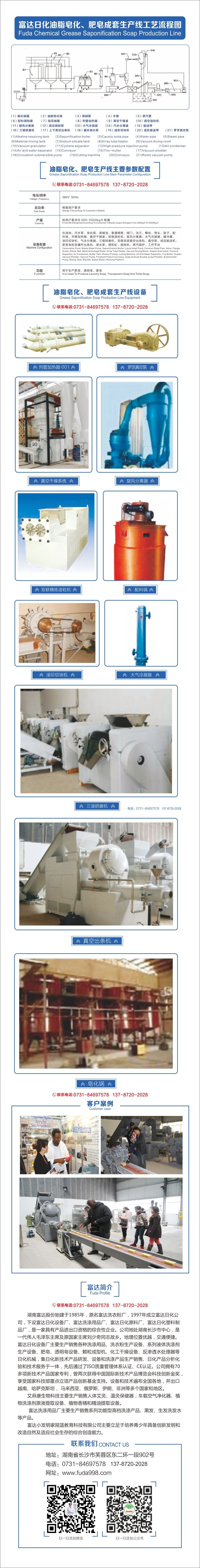 化油池,污水泵,皂化鍋,液堿池,普通鋼管,閥門,法蘭,螺絲,彎頭,墊子,配料鍋,列管加熱器,真空干燥室,雙聯造粒機,旋風分離器,大氣冷凝器,緩沖罐,滾印切塊機,氣水分離器,三輥研磨機,雙聯雙層真空出條機,真空泵,成品輸送機,肥皂造粒雙螺桿出條機,潛水泵,調和缸,攪拌機,蒸汽鍋爐,工作平臺 |